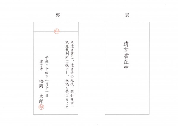 遺言者の死後、うっかり遺族が開封することのないよう、「本遺言書は、遺言者の死後、未開封のまま家庭裁判所に提出し、検認を受けること」などと添え書きしておきます。